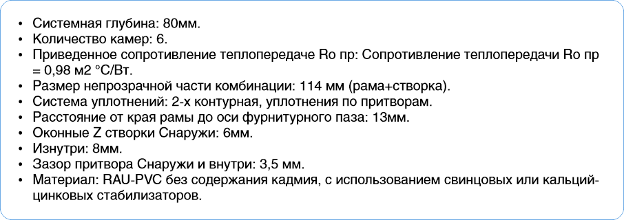 Новейшая разработка REHAU, которая представляет собой многокамерную систему с оптимальной высотой комбинаций главных профилей, что обеспечивает сочетание высоких теплоизоляционных свойств с максимальным светопропусканием.